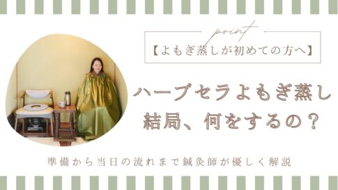 Harimoではこのハーブセラよもぎ蒸しと低刺激な鍼灸治療がセットになったメニューがございます。