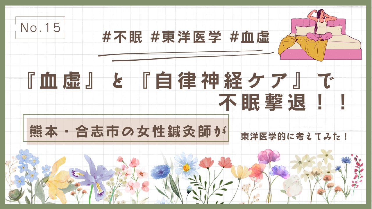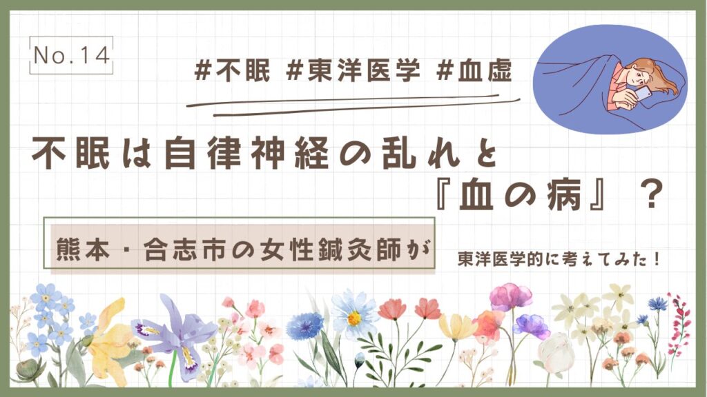 東洋医学で不眠の原因は『血(けつ)』の不足が考えれられ、それを『血虚』と言います。