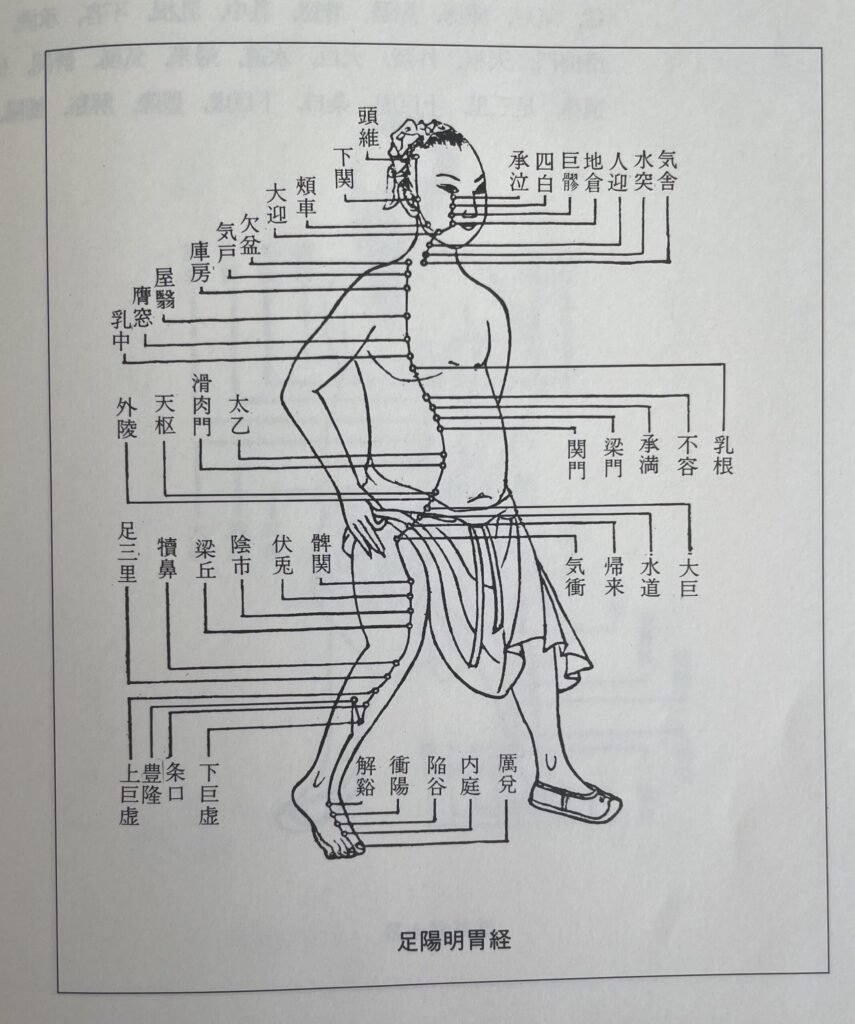 『膝が痛いんです』と患者さんが言ったらまず私が疑うのはこの胃経です。膝を通る経絡だから!胃経の末端にあるツボを触ったり押したり、局所を触ったり。その流れで、私が聞くのは